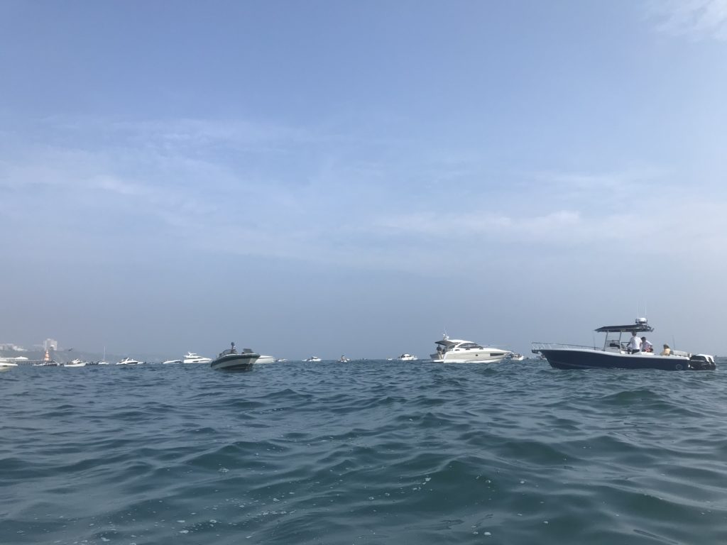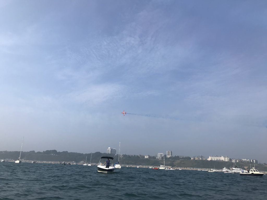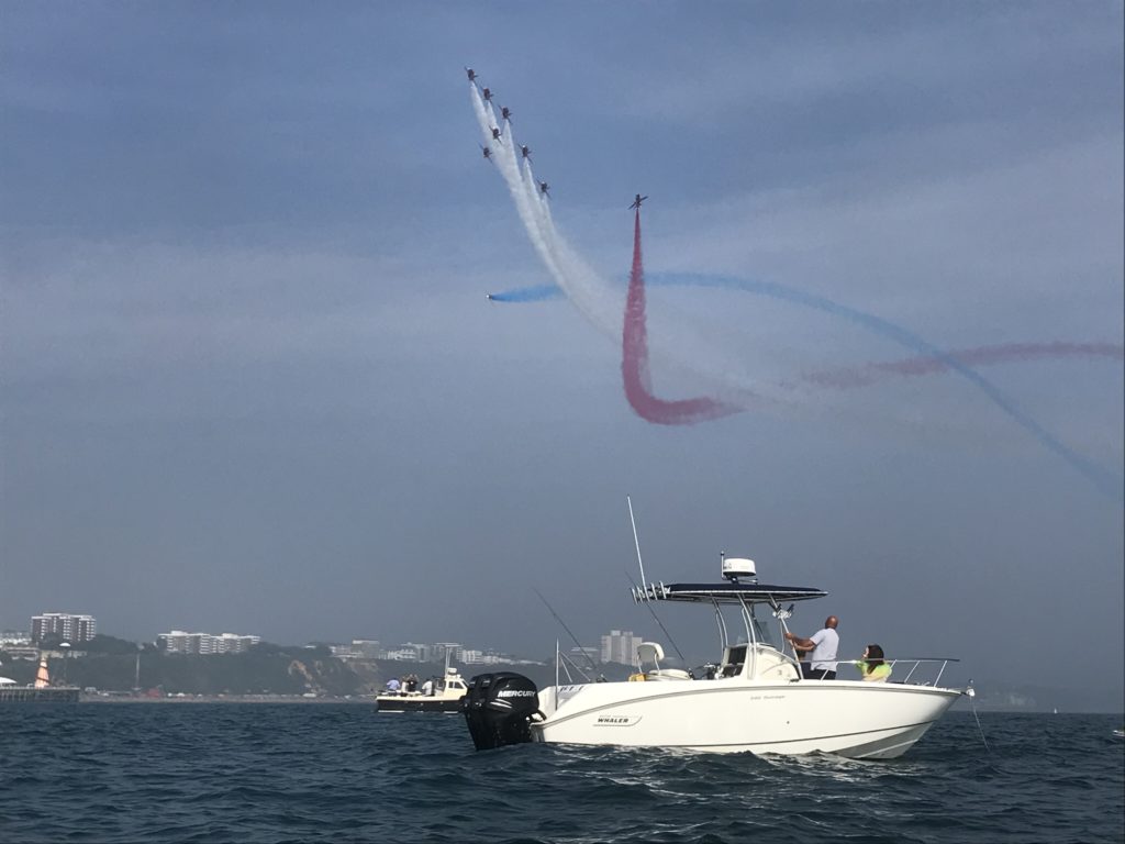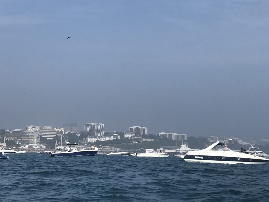 実は今日はボーンマスで毎年開催されている航空祭の最終日なのです。そこで、海上から航空機を見るためにたくさんのボートが集結しています。