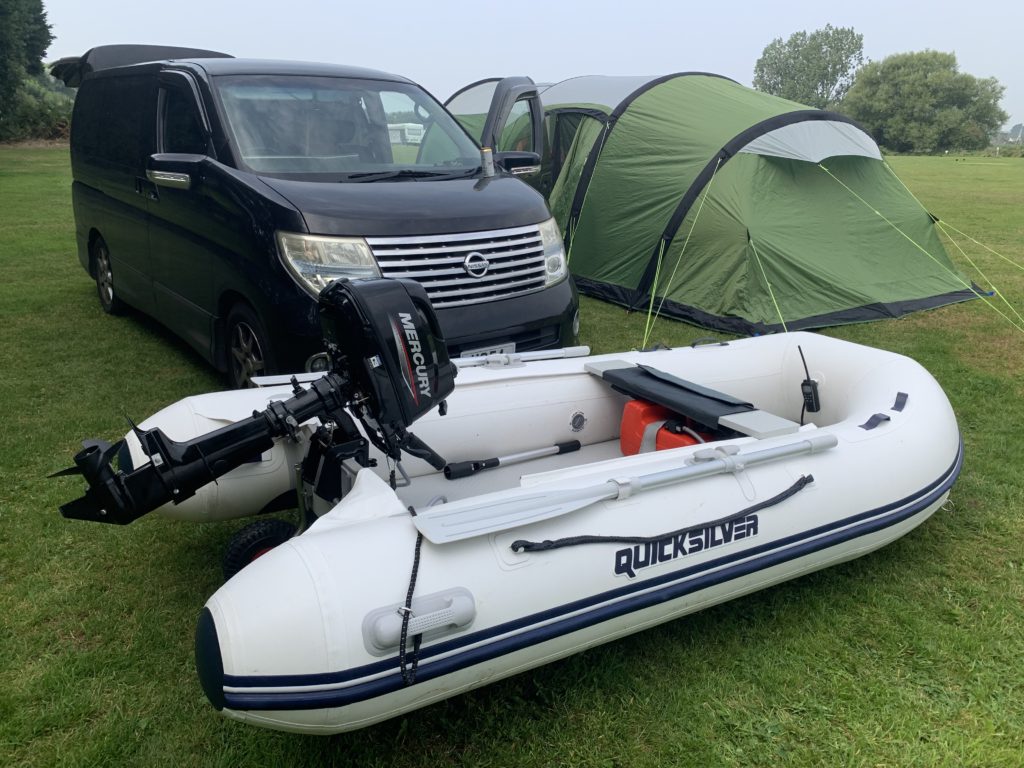 このゴムボートは空気を抜けば折りたたむことができ、バンに乗せて運ぶことができます。でも、かなり重いので二人がかりで運びます。